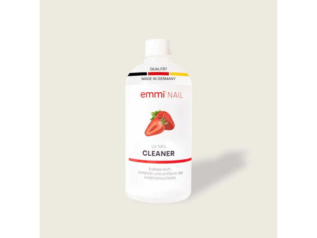 Emmi®-Nail Čistič 500 ml s vôňou jahody dezinfikuje a odmasťuje prírodné nechty. Odstraňuje lepkavú vrstvu (inhibičnú vrstvu) a zároveň poskytuje príjemnú jahodovú vôňu. Pre optimálne výsledky odporúčame každý necht očistiť samostatne novou servítkou a čerstvým čističom. Pre dlhotrvajúci lesk používajte náš Emmi®-Nail High Gloss Cleaner.