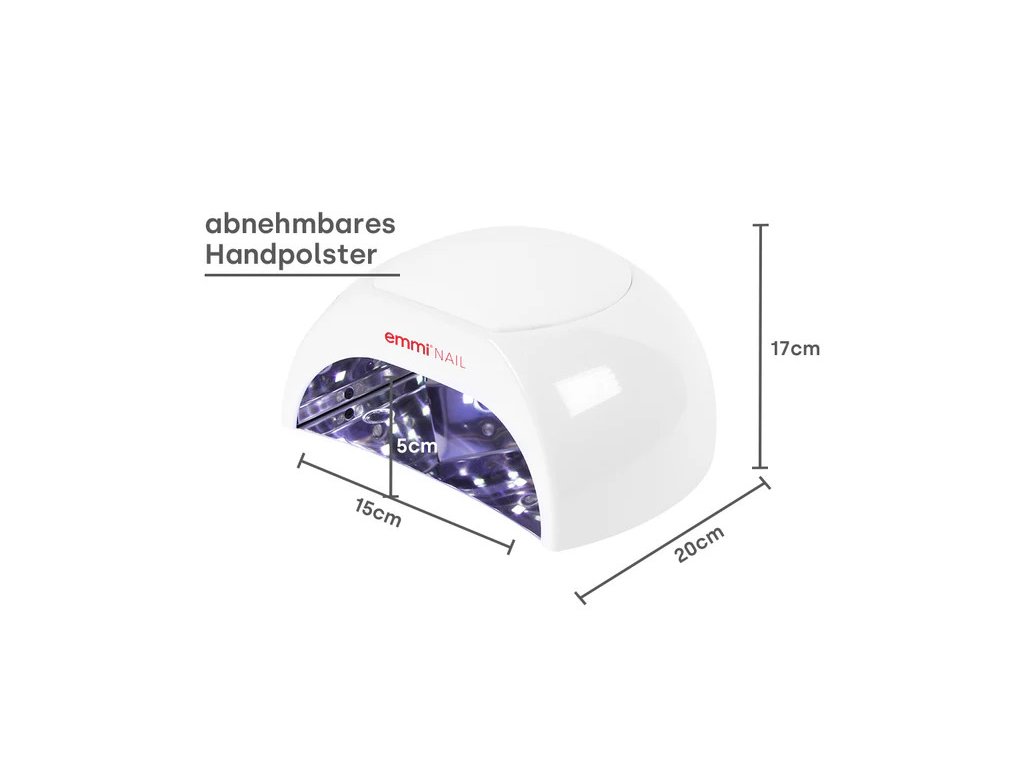 Emmi-Dome Light UV/LED lampička s Low-Heat časovačom vám zaručí vytvrdnutie vašej modeláže nechtov v čo najkratšom čase. Výkon sa dá regulovať od 100 % v režime power mode až po 50 % v režime 1/2 power mode, a Low-Heat časovač zabezpečuje vytvrdnutie s nízkou tvorbou tepla. To je obzvlášť výhodné pri spevňovaní prirodzených nechtov. Vďaka modernej technológii UV/LED zariadenia a 33 vysokokvalitným UV-LED diódam sa všetky Emmi-Nail UV a LED gély a UV laky vytvrdzujú už od 5 sekúnd pri vlnovej dĺžke 365–405 nm, čo umožňuje rýchle a pohodlné vytvrdnutie dizajnu nechtov. V závislosti od typu a vlastností materiálu je kompletné vytvrdnutie možné po 30 alebo 60 sekundách.
