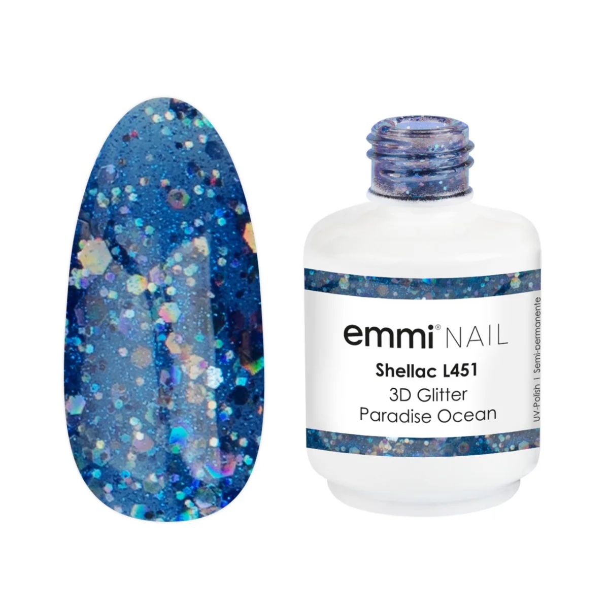 Emmi SHELLAC UV/LED Lak 3D GLITTER PARADISE OCEAN 15ML -L451-
